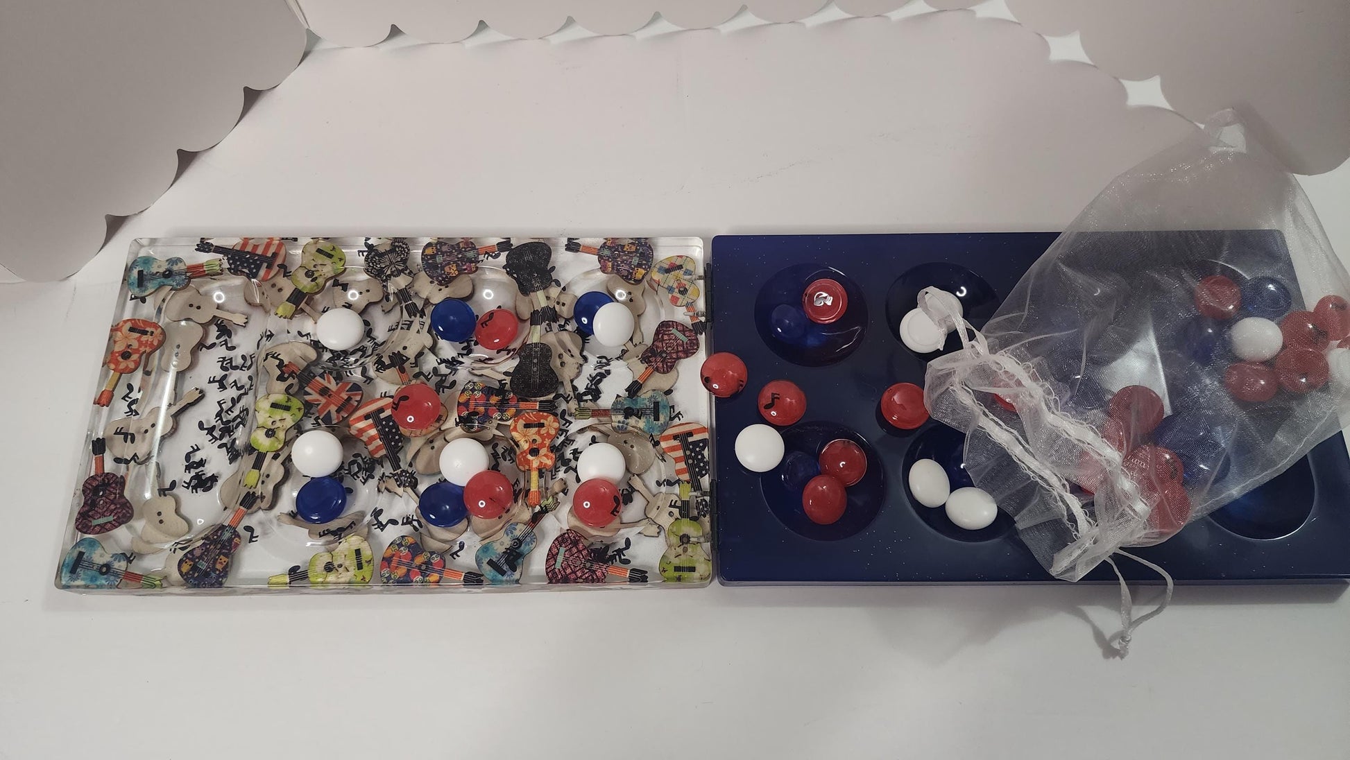 The standard game comes with 48+ custom made resin marbles, but I throw a couple extra's in just in case one goes missing.